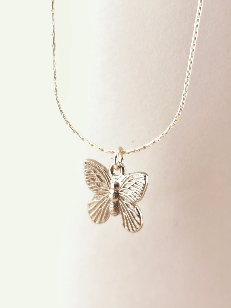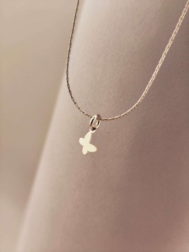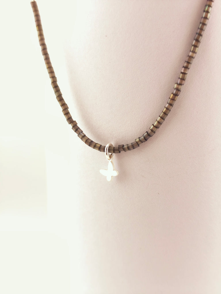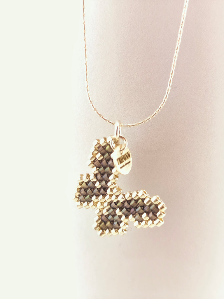 Collar Mariposa mini con Cristal Japonés Bañado en Plata y Antracita