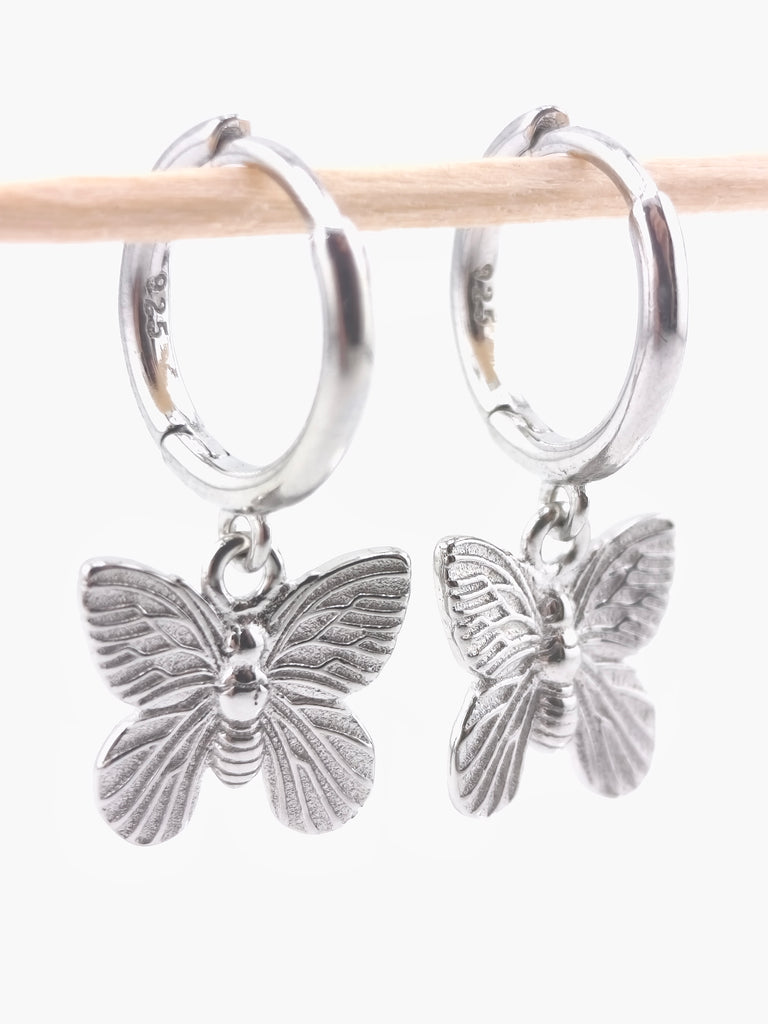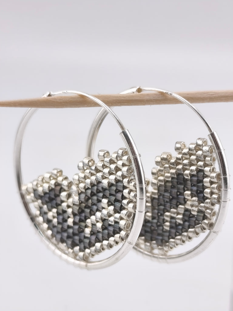 Pendientes aro mariposa en plata de ley y cristal japonés antracita