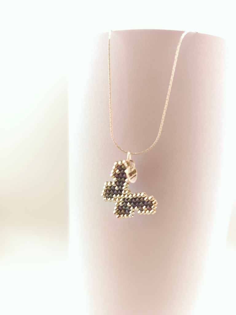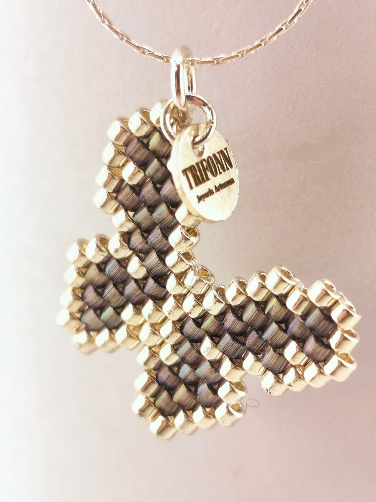 Collar Mariposa mini con Cristal Japonés Bañado en Plata y Antracita