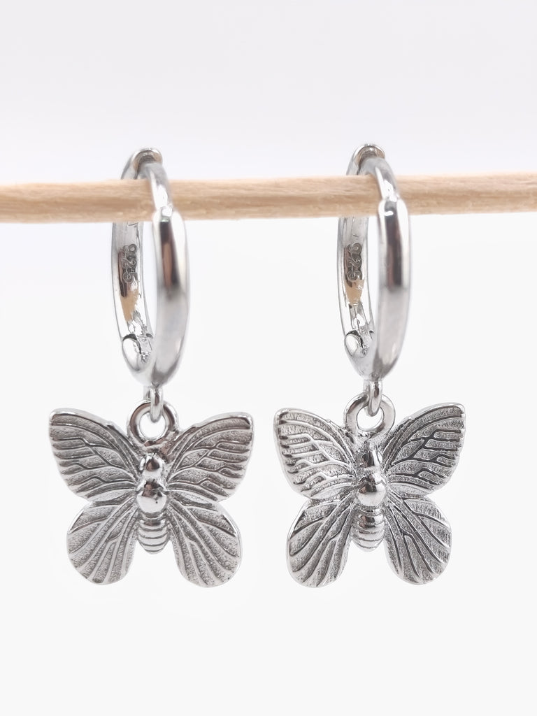 Los pendientes mariposa están en un punto medio entre el pendiente largo y corto, ideales para las más conservadoras que quieren arriesgar un poquito sin perder el control. De plata de primera ley 925.