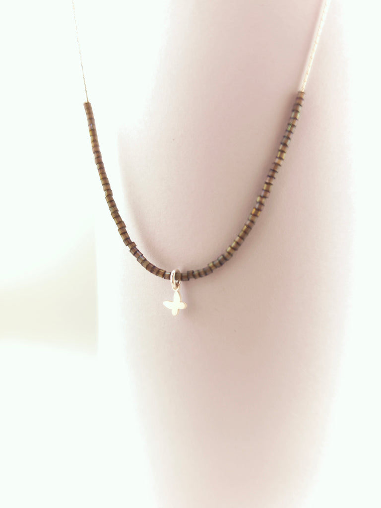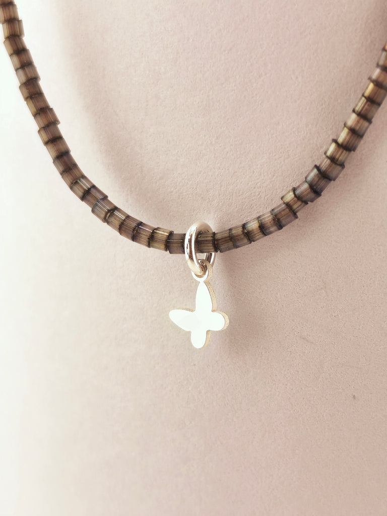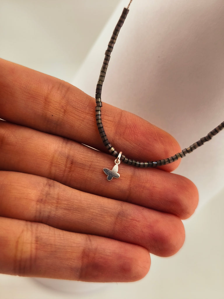 Collar Alas de Cristal Japonés Antracita con Mini Mariposa de Plata 925