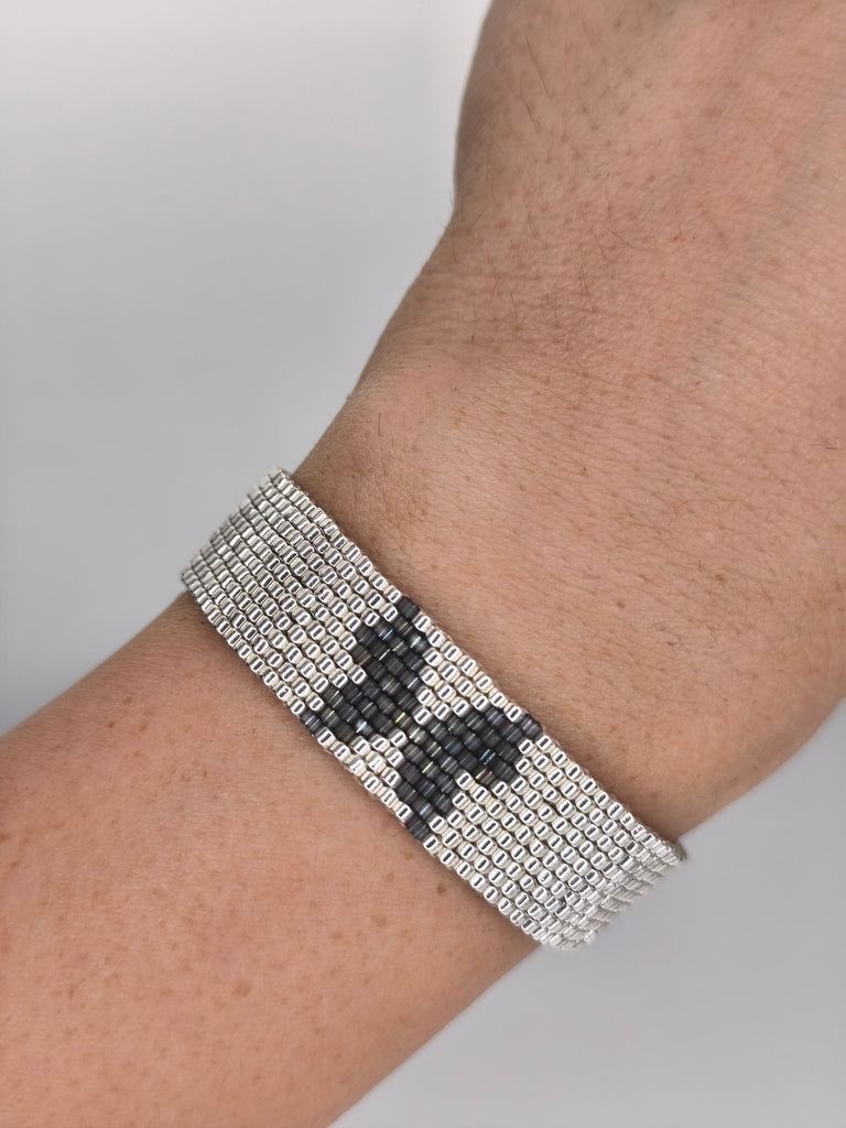 Pulsera Alas con Mariposa en Cristal Japonés Plateado y Antracita